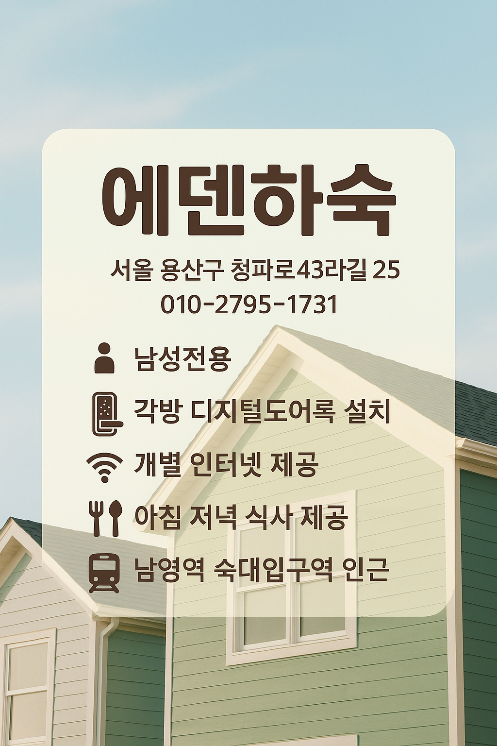 위 치 : 서울 용산구 청파로43라길 25. 에덴하숙