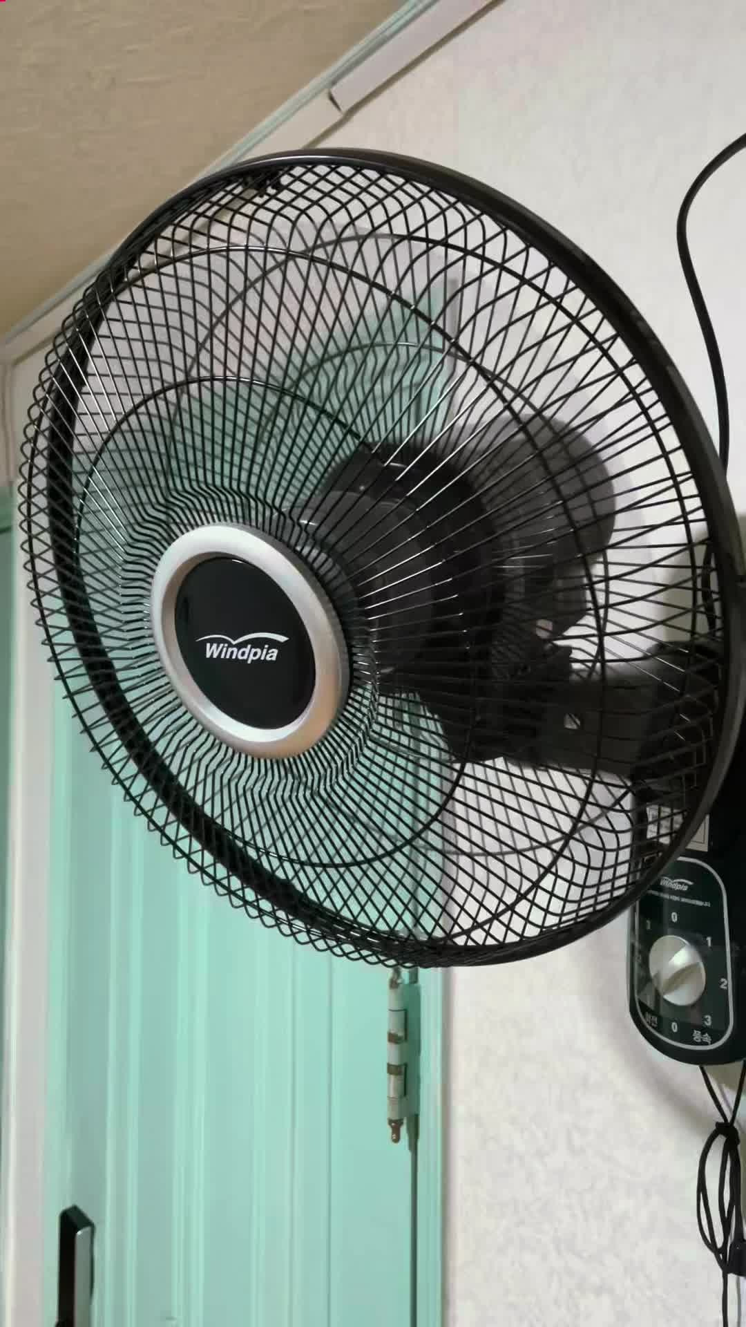 거실에 회전 벽걸이 선풍기를 달았습니다.