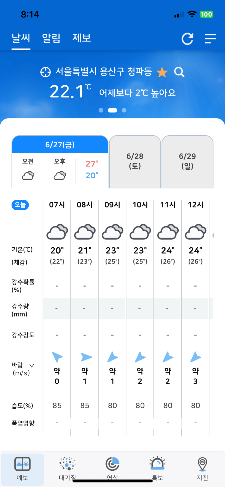 예보 습도 80%....